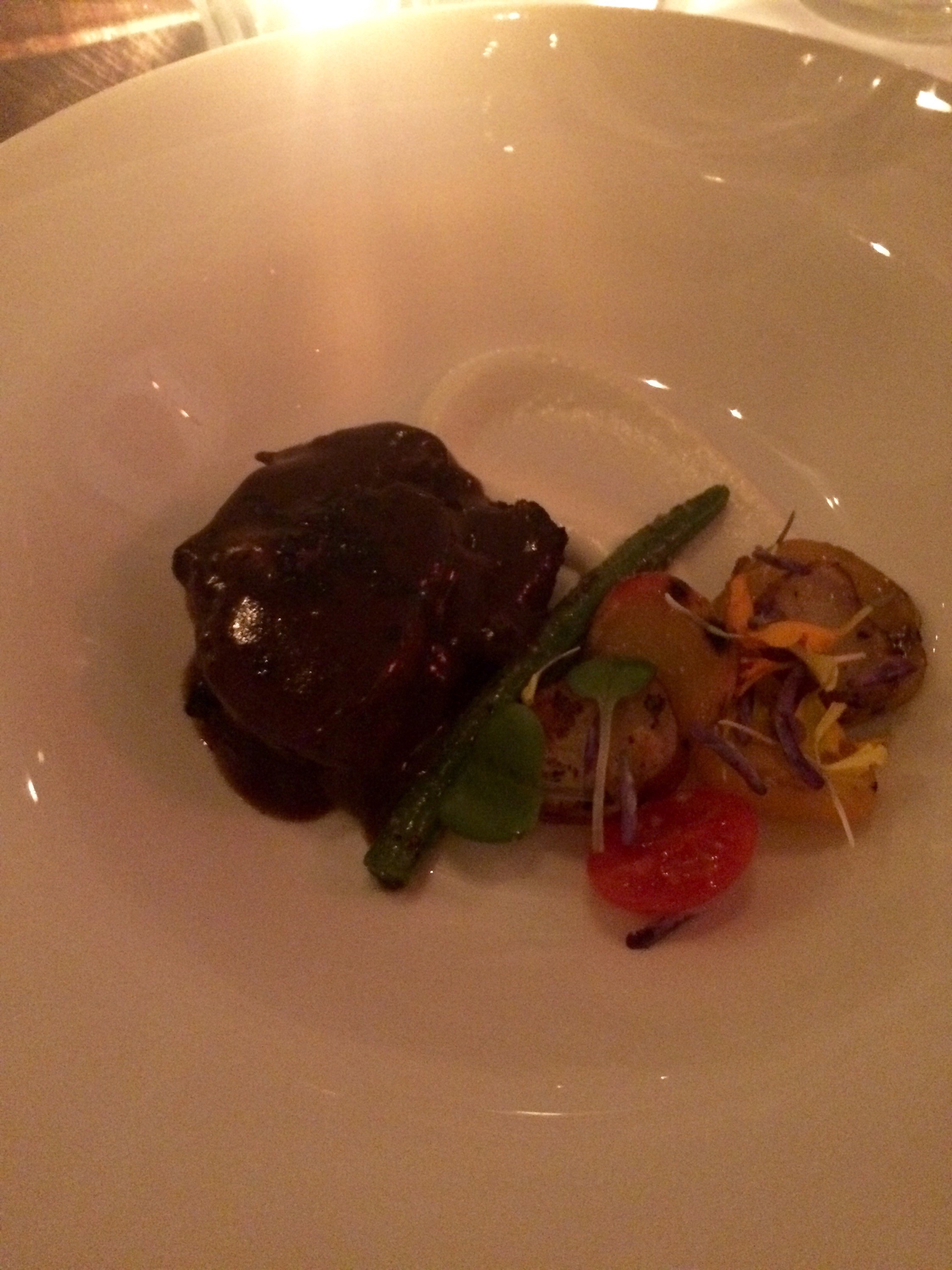 Braised pork in Colombian coffee and sugarcane reduction.