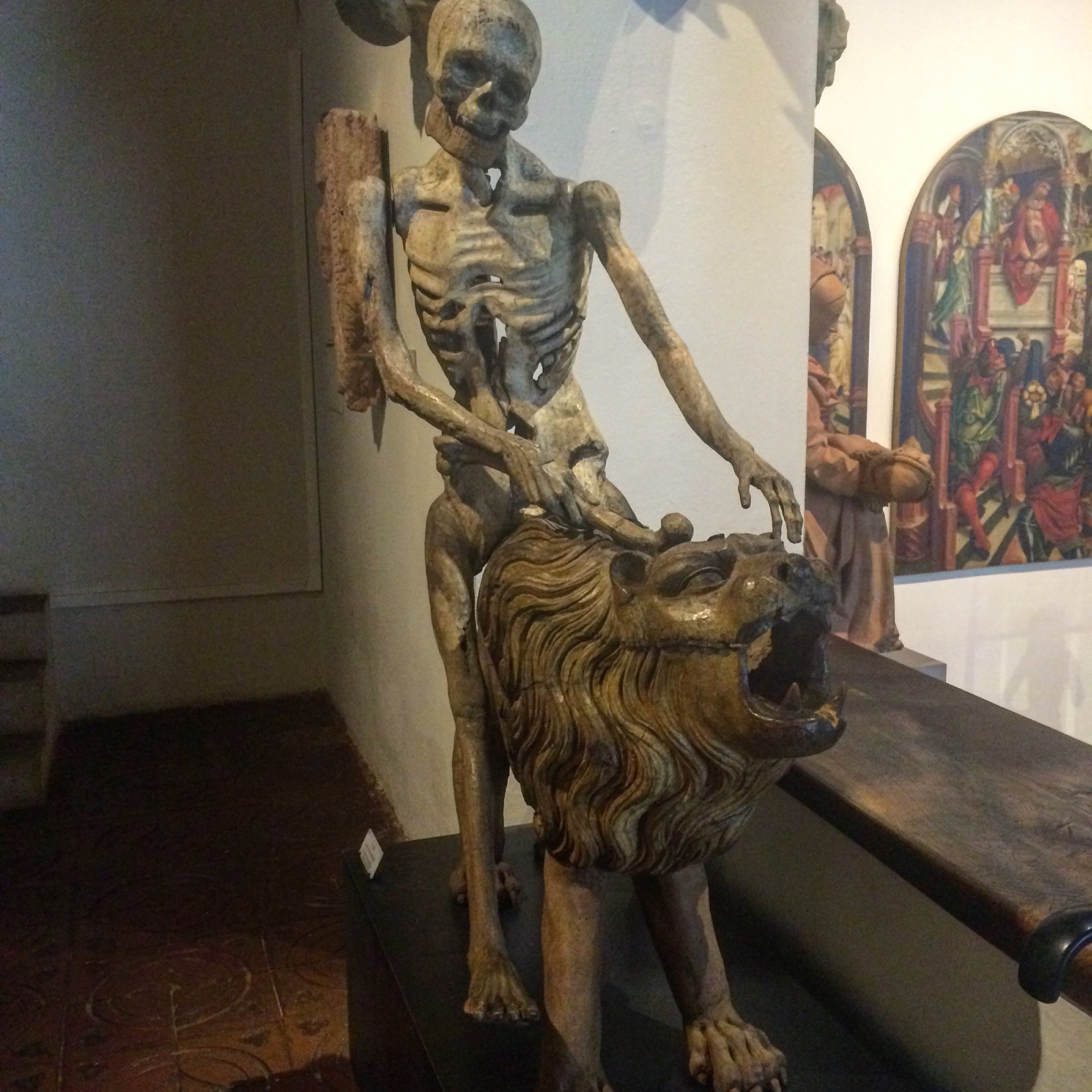 This piece was a clock and the skeleton was a reminder that each second brings man closer to his death and even the courageous lion is not immune to death.Beautiful blown glass glassesThis little guy just looked so happy and cute to have all his grapesThis door had the smell of a very old house and looked like it was out of a fairy tale