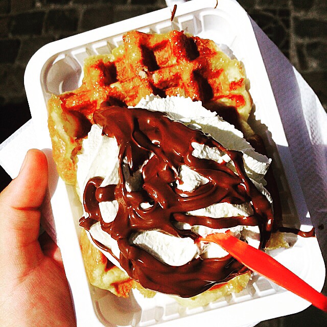 The waffle is super sweet and add on the cream and nutella, I was on a sugar high for about a week.